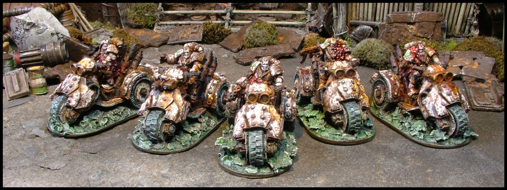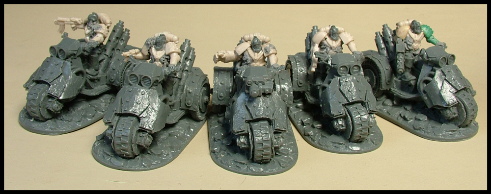 I also made a unit of bikers. These are Ramshackle Trikes with integral legs. Easy to convert up!